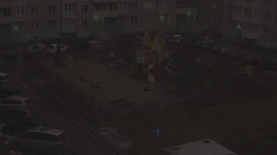 Another "functional" place, bleak and just surrounded by cars looking for parking places. Never saw a child playing on the colourful constructions but maybe that's different in summer. Together with the window lights, the blinking Christmas decoration looks like an art installation.